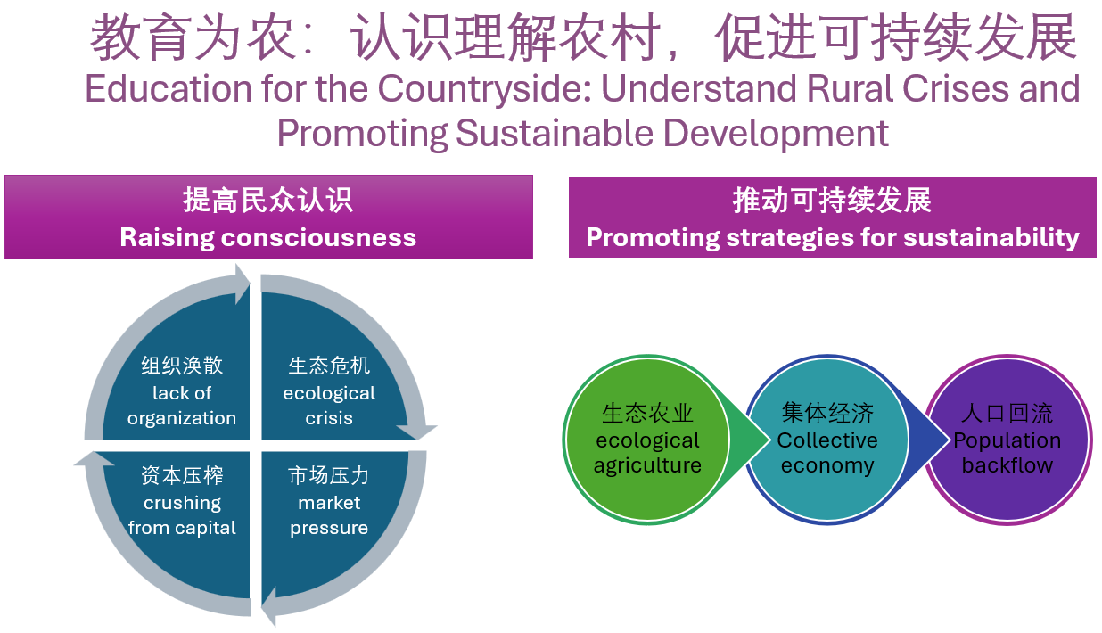 随后,王丹教授从教育公平问题的定义和表现形式切入农村教育的议题,回顾了城乡教育在经费、师资、家庭背景、学校、学生流动/留守情况、学业成绩等方面的差距,指出了“城镇化”策略在应对城乡教育分配性不均衡时存在的不足与缺陷。王丹教授进一步指出,农村教育的改变需要的不只是升学机会的均等,更需要的能够改善农民生活、建设农村社区、提高农业生产的知识与能力。为此,王丹教授从产业结构、农产品贸易、农村可持续发展的角度对农村面临的问题和挑战进行了深入解读,将农村危机总结为“组织涣散”、“生态危机”、“资本压榨”和“市场压力”,并指出农村教育的出路必须与“生态农业”、“集体经济”和“人口回流”的探索结合起来。