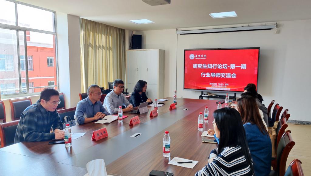 为深化研究生培养模式改革,构建校内外协同育人新机制,切实提升教育硕士的专业素养与实践能力,10月23日,教师教育(体育)学院成功举办研究生知行论坛首期活动行业导师交流会。本次活动特邀临海市哲商小学党总支书记陈选峰、临海市哲商现代实验小学校长陈坚光两位资深行业专家与会交流。院长张夫伟、副院长张樱樱及2025级全体全日制研究生共同参会,会议由张樱樱主持。