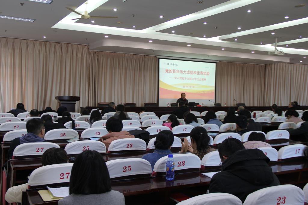 为持续掀起学习贯彻十九届六中全会精神热潮,12月2日,校党委委员、副校长胡韶光在教师教育学院为全体教职工作六中全会精神专题宣讲,学院党委书记赵校民主持。