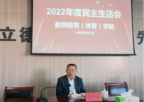 2月21日下午,教师教育学院党委召开2022年度民主生活会,校党委副书记、校长乐传永到会指导,院党委书记吴银银主持会议,学院党政领导班子成员、党委委员参加会议。