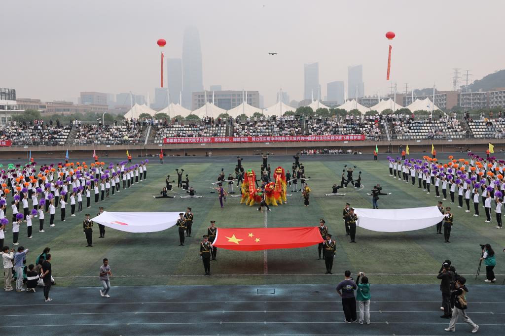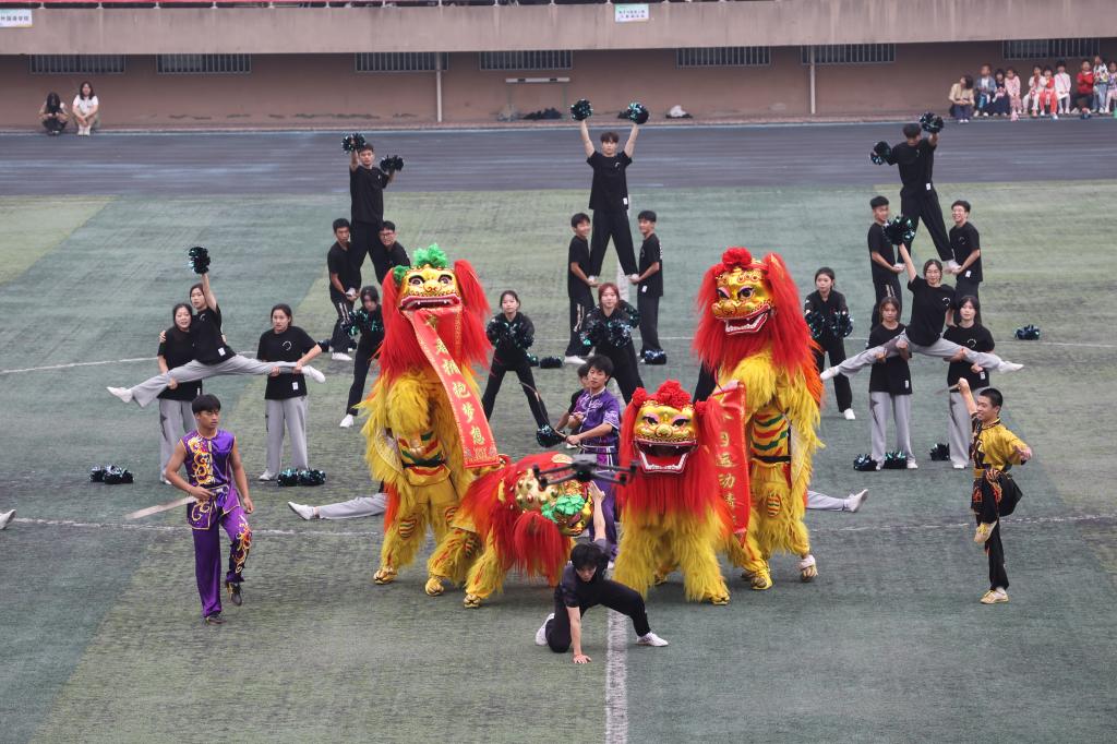 开幕式中,各学院入场方队精神抖擞,争奇斗艳。由我院学生党员表演的舞狮和健美操压轴出场,技惊四座。聚力量、胆量和演绎为一体的舞狮表演,将我国中华传统文化的魂魄展现的淋漓尽致;整齐划一、流畅多变、极富创意的健美操表演更是激情澎湃,瞬间点燃在场观众的激情之火。