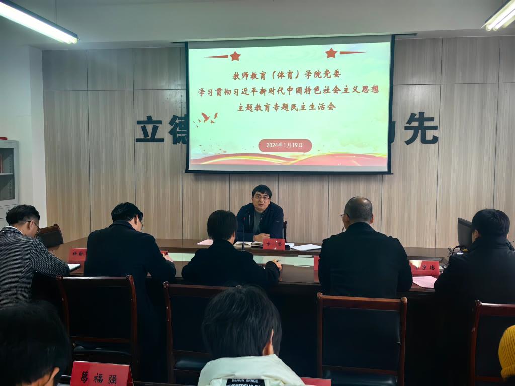 1月19日上午,教师教育(体育)学院党委召开学习贯彻习近平新时代中国特色社会主义思想主题教育专题民主生活会,校党委书记朱坚到会指导。院党委书记吴银银主持会议,学院党政领导班子成员、党委委员等参加。