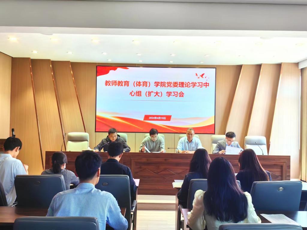 4月18日上午,教师教育(体育)学院党委理论学习中心组在学院会议室举行专题学习会。学院党委副书记吴磊主持会议,院领导班子成员、党委委员、各党支部书记参加会议。