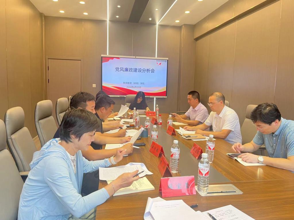6月25日上午,教师教育(体育)学院召开2024年上半年党风廉政建设分析会。校纪委委员、后勤服务管理处处长王秋方到会督查指导,院党委书记林辉杰主持会议,院党政班子成员、党委委员、支部书记参加会议。