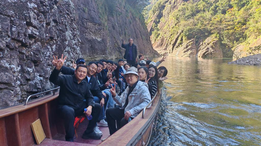 随后,教师们抵达石桅岩。石桅岩景区里绿树成荫、奇峰怪石、秀水蜿蜒,教师们在绿水青山中享受着大自然的馈赠,溪边戏水、幽径漫步、泛舟湖上。此次活动增进了教职工之间的交流,让学院教职工在繁忙的工作之余,缓解压力,愉悦身心,提升了幸福感和归属感。