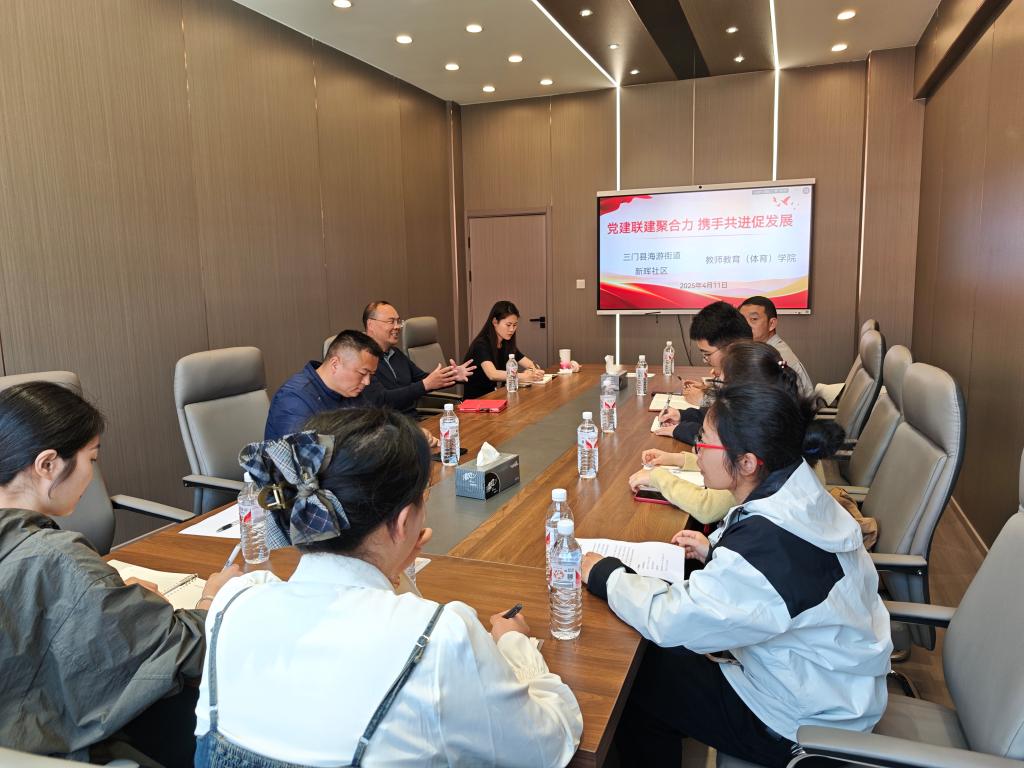为进一步加强基层党组织建设,整合学校、社区优势资源,促进学校与地方互助共赢,4月11日上午,教师教育(体育)学院与三门县海游街道新晖社区举办党建联建洽谈会,三门县委社会工作部基层治理与基层政权科副科长范零峰、新晖社区党委书记俞高明一行参加会议,学院党委书记林辉杰、副书记吴磊及相关老师参加会议。