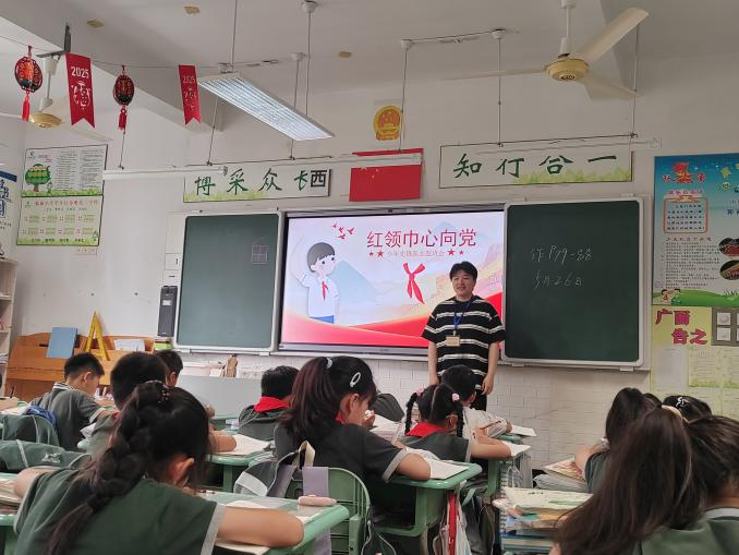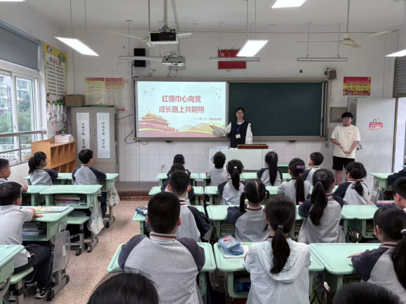 为深化红色教育,筑牢青少年理想信念根基,小学教育党支部走进小学,开展“红领巾心向党,成长路上共翱翔”主题班会活动,以生动实践发挥大学生党员先锋模范作用,通过红色教育、成长引导与趣味互动,将爱党爱国情怀与理想信念的种子深植小学生心中。