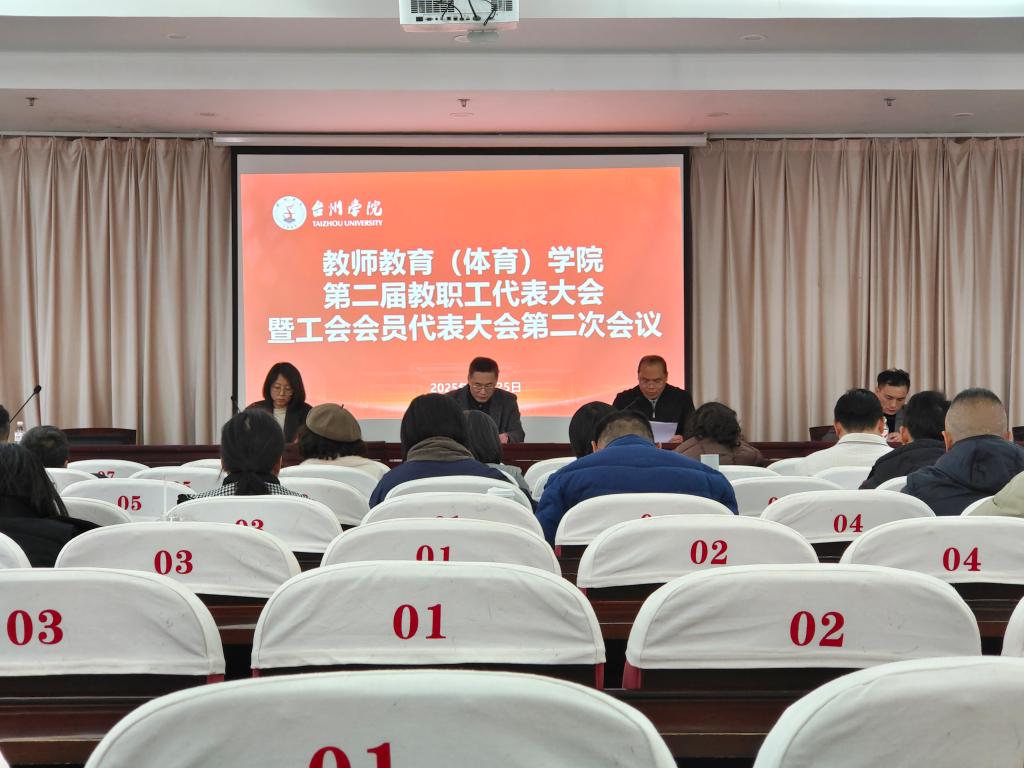 12月25日下午,教师教育(体育)学院第二届教职工代表大会暨工会会员代表大会第二次会议在临海校区学术报告厅召开。学院党政领导及正式代表出席会议,党委书记林辉杰主持会议。