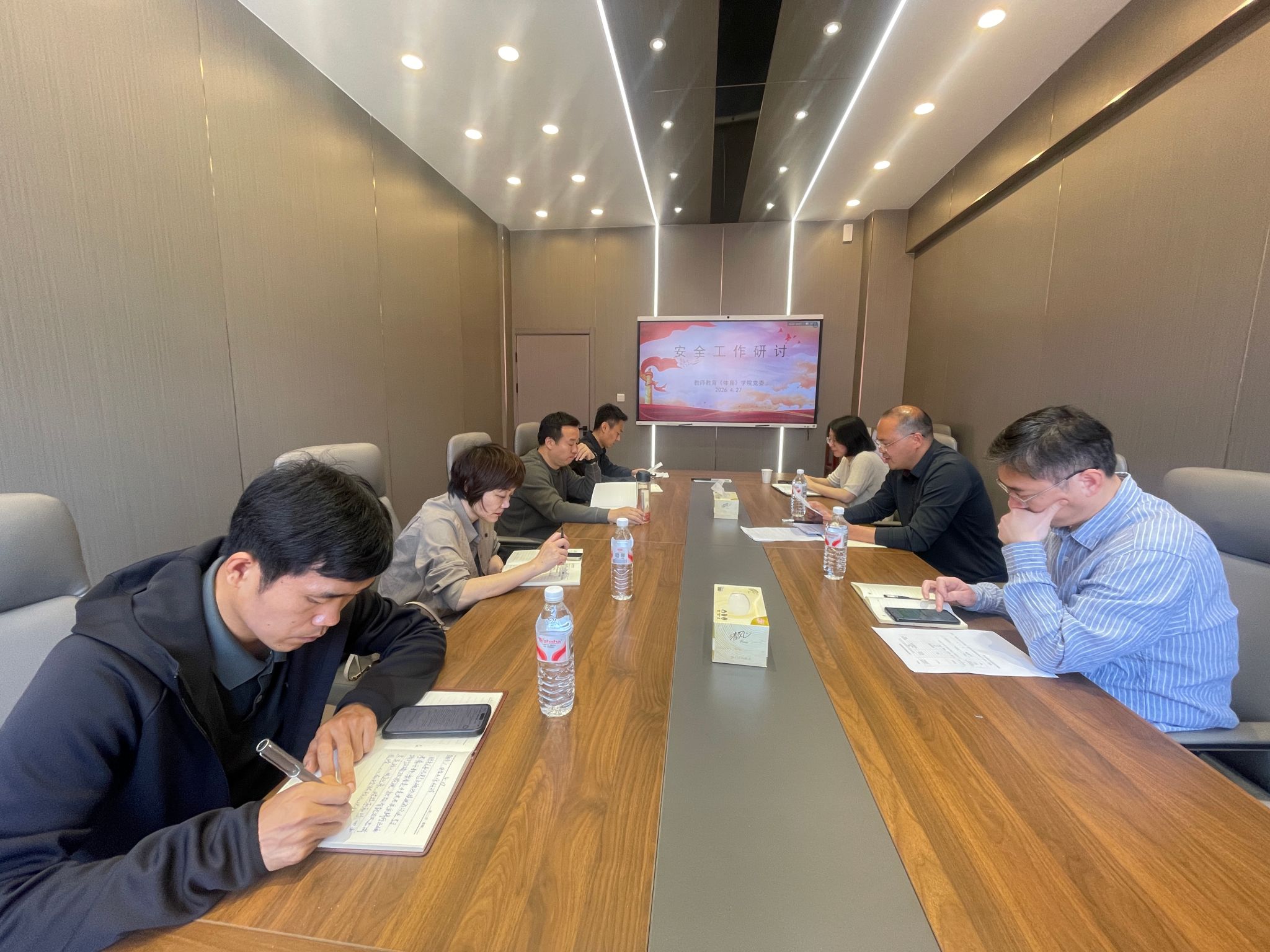 4月27日上午,教师教育(体育)学院党委召开安全工作专题研讨会,围绕学校年度考核安全工作和近期安全工作要点,从制度落实、风险预判、协同治理三个维度展开深入研讨。会议由院党委书记林辉杰主持,全体学院党政领导班子和党委委员参加。