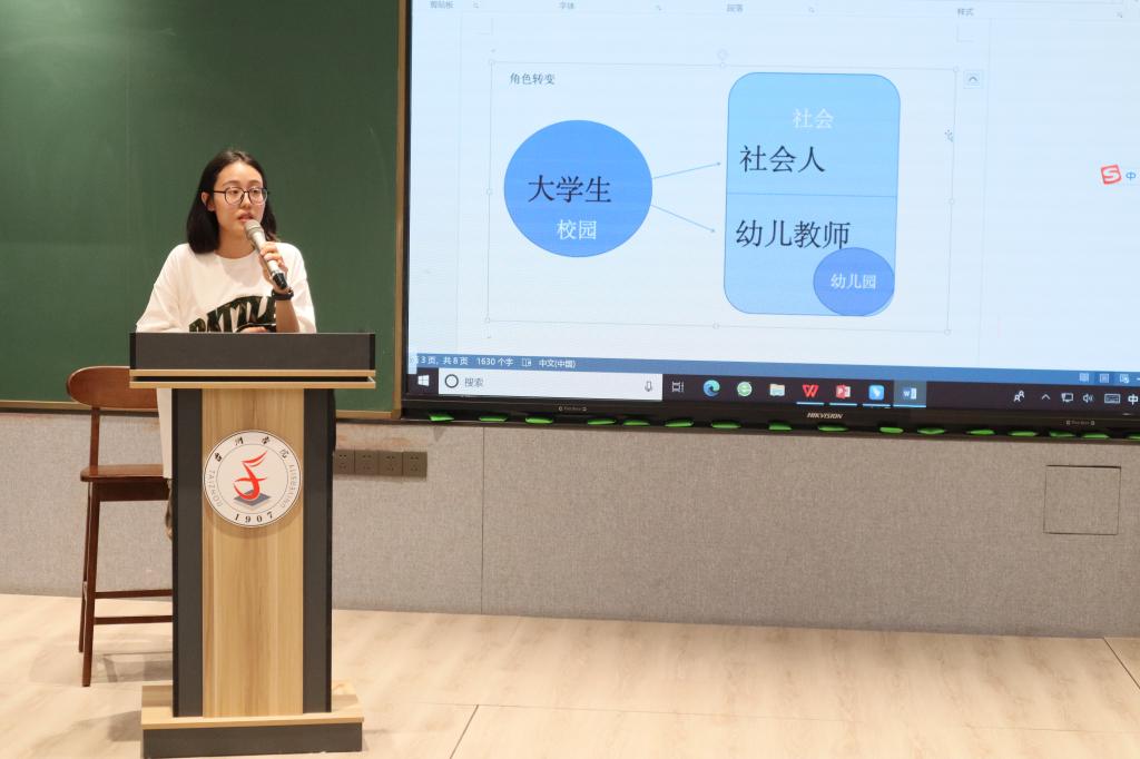 最后,汤霞敏总结发言。她强调,在这个开放包容的时代,同学们应多听听他人的声音,多感受多体验,才能更好地了解自己,避免在迷茫中蹉跎岁月。她鼓励同学们珍惜此次机会,将学姐们的经验和建议转化为自己的目标和动力,努力在学前教育领域取得优异成绩。