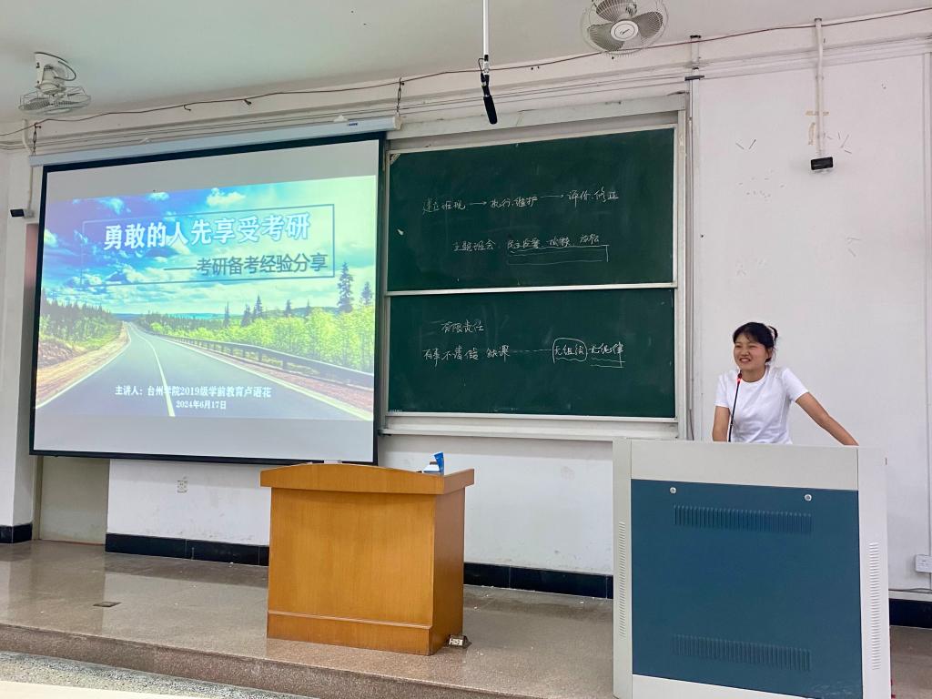 为了帮助学生了解考研流程、掌握科学备考方法、提高考研成功率,教师教育(体育)学院于2024年6月17日下午A5会议室举办“研途有梦,护航有我”考研及出国经验分享交流会。本次交流会特别邀请到了上岸于浙江师范大学学前教育专业的19级学前教育卢语花和收获墨尔本大学,利兹大学等offer,即将前往新南威尔士大学研读教育学硕士的20学前教育牟奕涵做考研经验分享,2021级学前教育专业全体学生积极参与。
