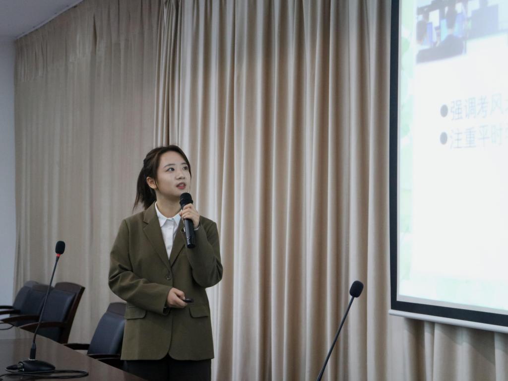 活动伊始,主持人陈一诺简要介绍了活动的流程及参与的班级。在主讲环节中,每个班级的主讲人就本班的学风建设成果与未来计划展开了详细的论述,并通过ppt展示集体所获各项荣誉。针对每班不同的学分特点,老师们抛出相应问题,学生自信大方地完成答辩,并仔细听取老师的意见。随后,吴磊老师对参与比赛的班级表示肯定,他提出可以多参考别人的优秀经验以更好的充实自己,并希望大家树立共同体意识,建立家国情怀的集体主义。最后,参与活动的同学在对各班有了初步了解后,投票评选心目中最具代表性的优良学风班级。