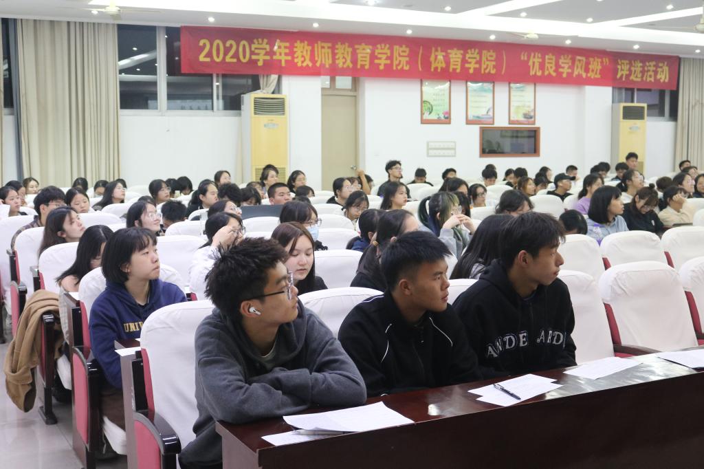10月24日晚,教师教育学院(体育学院)于图书馆六楼学术报告厅举办2020学年优良学风班评选活动,院党委副书记吴磊,院党委委员阎宝莹,辅导员徐薇、赵远远、朱萌出席。