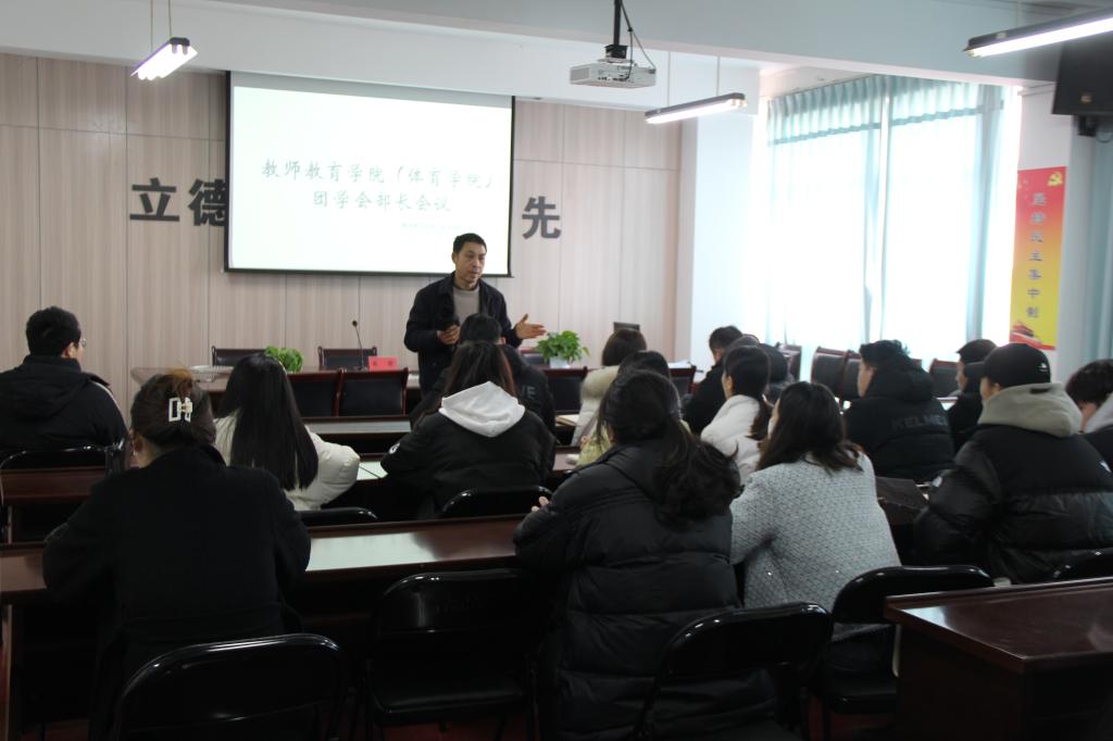 2月20日上午,教师教育学院(体育学院)在五号楼三楼会议室召开新学期学生干部会议。参加本次会议的有学工办主任阮溶明、辅导员朱萌、相关学生干部。