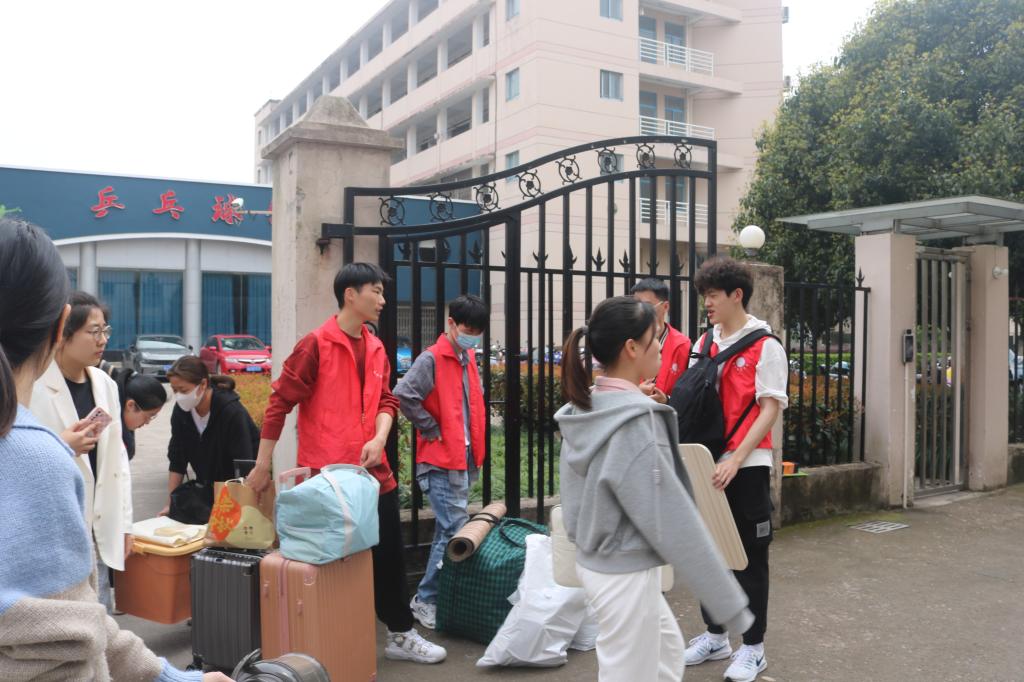 上午九点左右,第一批校车抵达广文超市门口,转专业的同学们陆续从校车上下来,并取下自己的行李。学生志愿者为转专业的同学引路,并借助电瓶车、小推车等工具帮助他们将行李运达目的地。在搬运行李的过程中,志愿者们也和转专业的同学们融洽地交谈着,帮助新同学尽快熟悉新校园,并为他们解答有关新专业的问题。在志愿者们的帮助下,行李全部搬运到了宿舍楼,新同学顺利入住了新寝室。