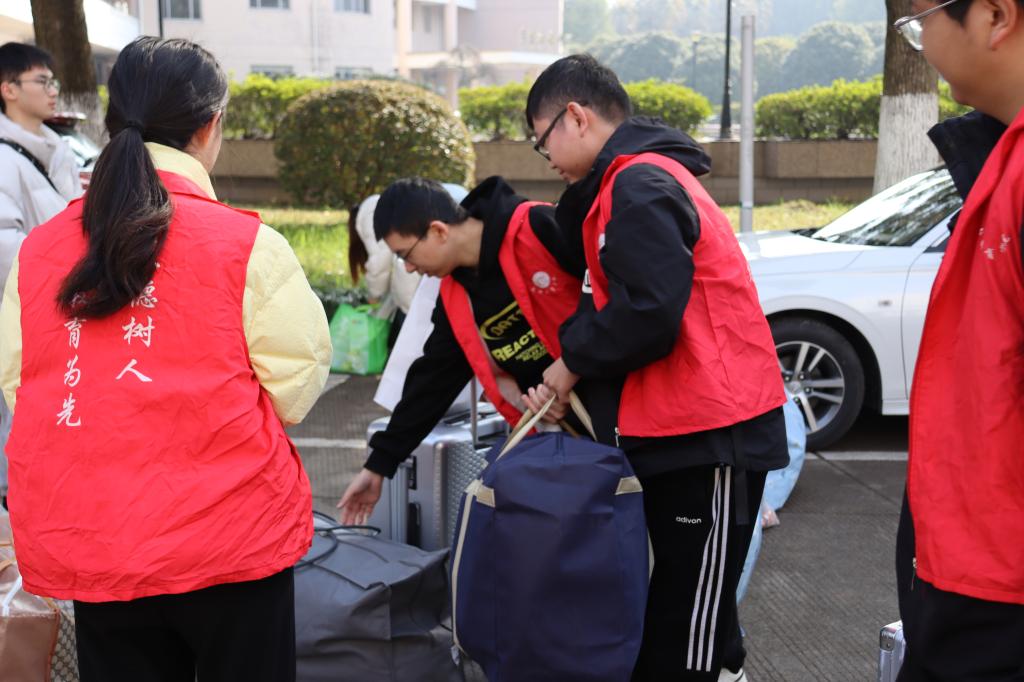 志愿者们身着火红的志愿者背心,展现出教院学子们的无私奉献精神。不到一小时,所有的行李都搬入了宿舍楼,每一位新同学都顺利入住了新寝室。