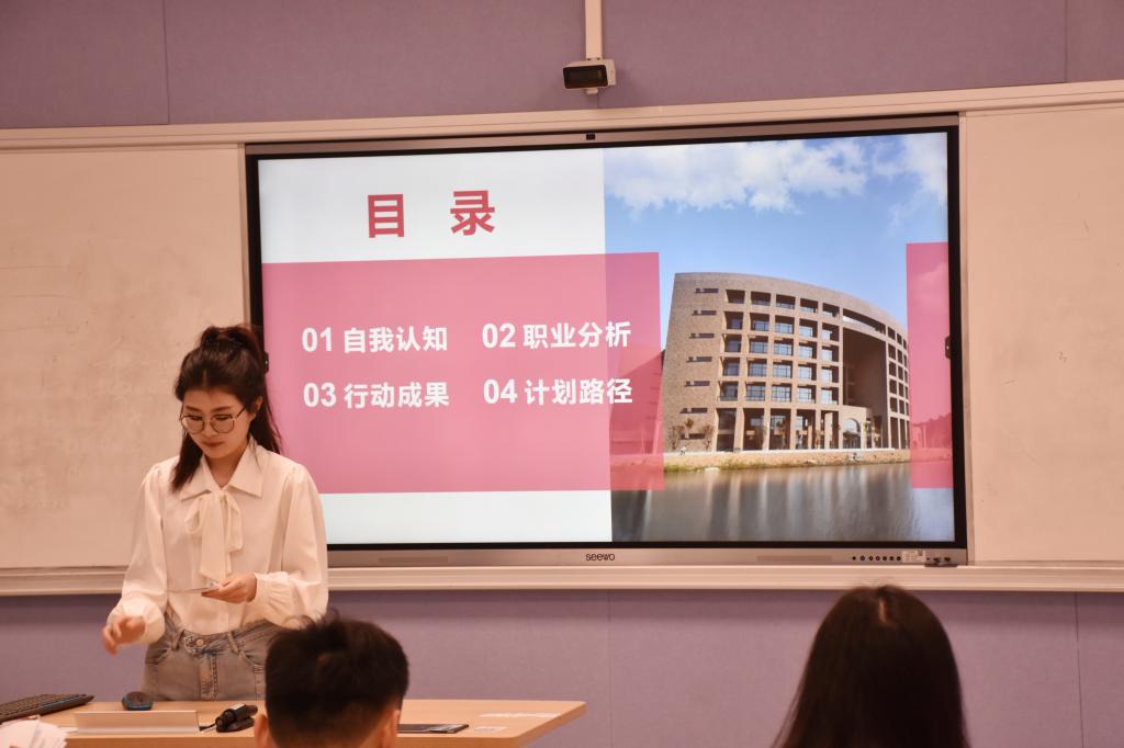 活动伊始,选手们结合个人的职业生涯发展报告,从自我认识、环境分析、职业目标、职业规划、行动成果等方面进行了精彩的展示与陈述,声情并茂地讲述了自己的职业生涯规划。在问答环节,选手们沉着应对,赢得了现场观众与评委老师的阵阵掌声。最后,评委老师结合选手的个人陈述及现场问答情况,对每位选手进行了综合评价及指导。