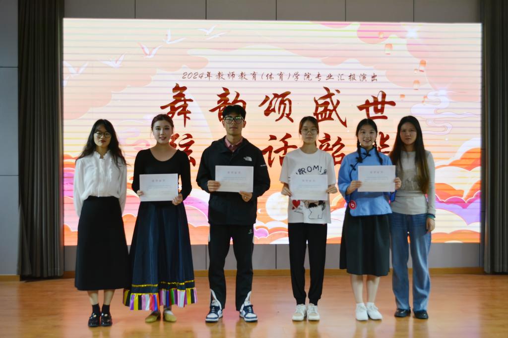 6月5日晚,教师教育(体育)学院于学生活动中心举办“舞韵颂盛世,弦音话韶华”专业汇报演出,此次活动由梅弘焘、汪琦、刘云鹏和黄佳莹担任主持,辅导员徐薇、朱浩楠、朱佳婧、屈佳妮,专业任课老师朱思燕、徐佳鑫应邀担任评委。