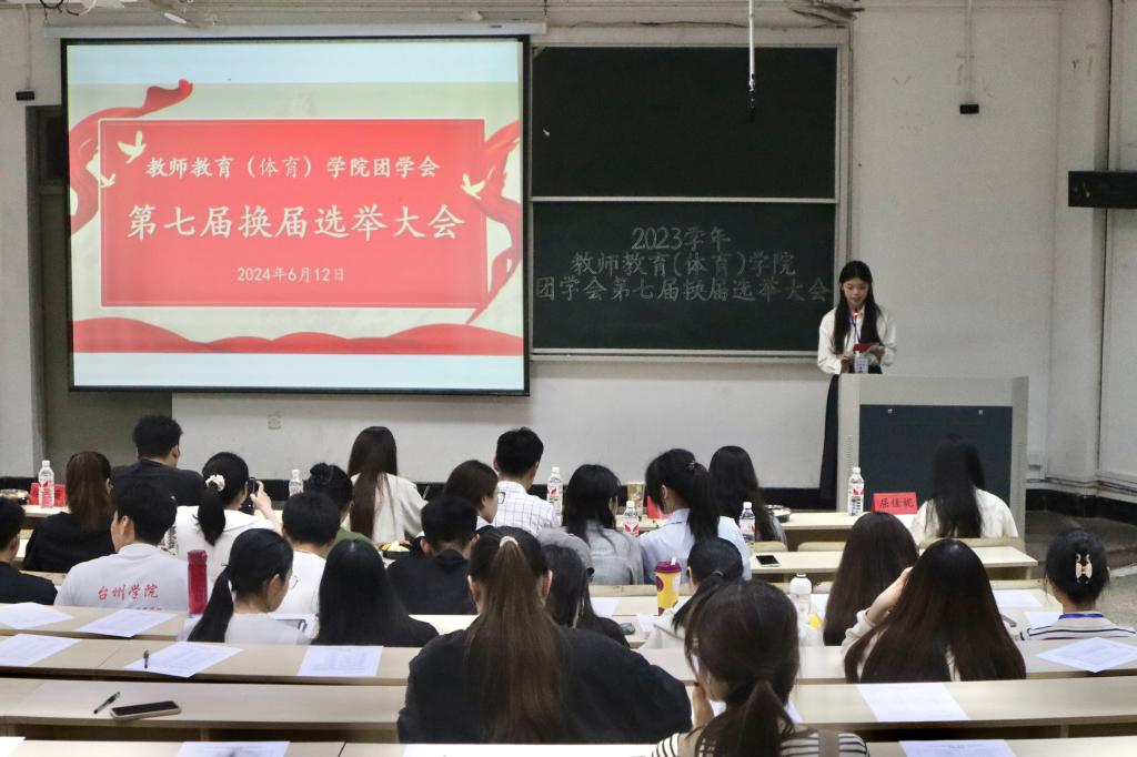 为进一步加强我院学生干部队伍建设,促进团学会工作的顺利开展,6月12日晚,教师教育(体育)学院于A5阶梯教室举行了团学会第七届换届选举大会。辅导员阎宝莹、徐薇、朱浩楠、梁鈨、朱佳婧、屈佳妮,团学会主席团以及各候选人、各班代表参加本次换届选举大会。