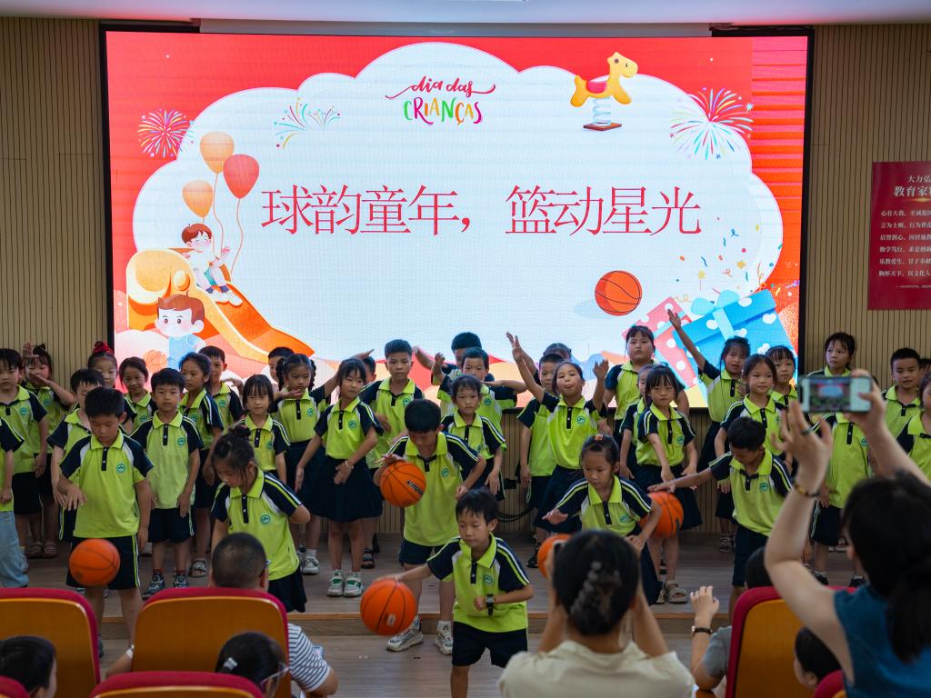 篮球操《球韵童年,篮动星光》展示了孩子们的运动天赋,活力四溢的表演赢得了现场观众的阵阵掌声。