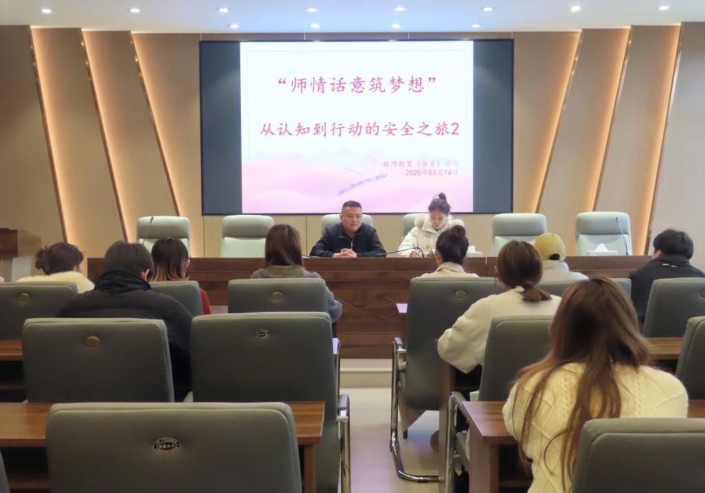 “平不肆险,安不忘危。”为共筑平安台院,3月14日中午,教师教育(体育)学院于5302教室召开了“师情话意筑梦想”——从认知到行动的安全之旅2。院党委副书记吴磊,辅导员朱浩楠及安全信息员出席本次会议。