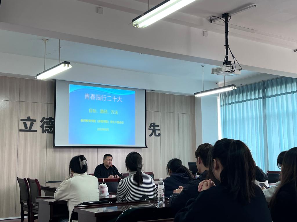 为更好地学习贯彻党的二十大精神,鼓励学生干部积极履职,3月30日中午,教师教育学院(体育学院)召开“青春践行二十大”学习座谈会。学院纪委书记、党委副书记吴磊以及大一至大三各班团支书参与本次会议。