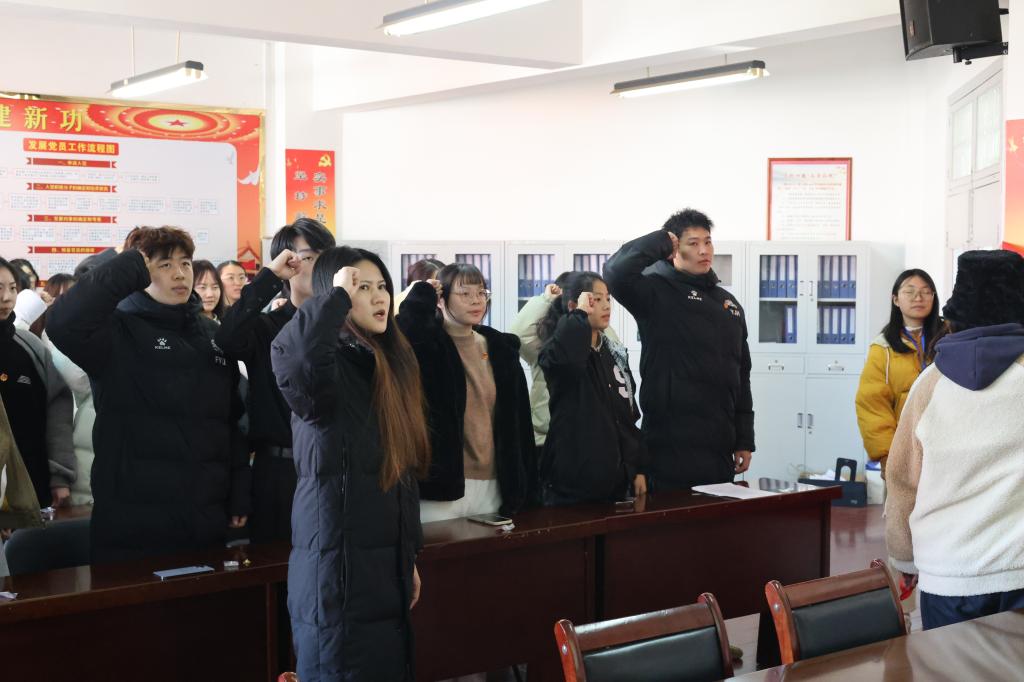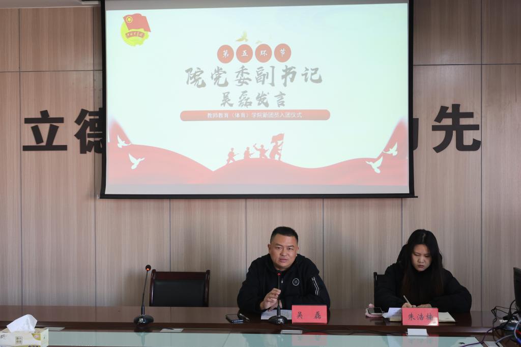为壮大中国共产主义青年团的鲜活力量,提升团组织的生命力和凝聚力,切实培养团员的使命感和责任感,12月27日,教师教育(体育)学院举办2023年度新团员入团仪式。学院党委副书记吴磊,学院团委书记朱浩楠,老团员代表庹钰婵及全体新团员参加仪式。