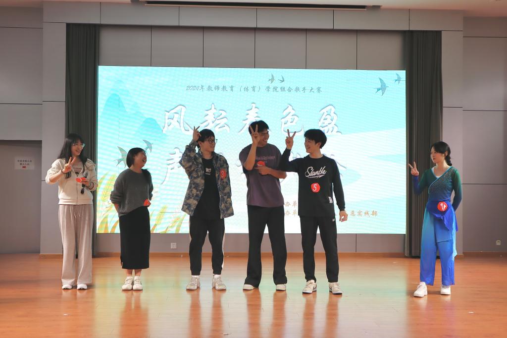 在这春暖花开、细雨丝丝的季节,为了展现教院学子的青春风采,4月21日晚,教师教育(体育)学院于学生活动中心举办“风耘春色盈,声扬和岁稔”组合歌手大赛。院党委副书记吴磊,辅导员阎宝莹、徐薇、朱浩楠、屈佳妮、朱佳婧,专业任课教师石颖、徐佳鑫出席本次决赛并担任评委。