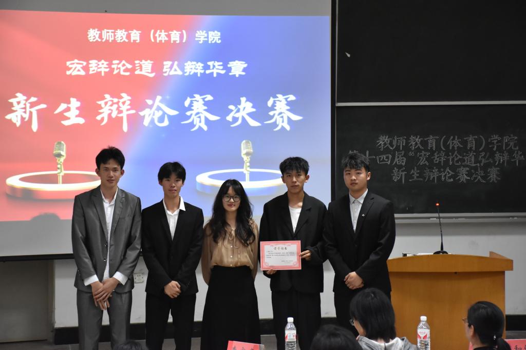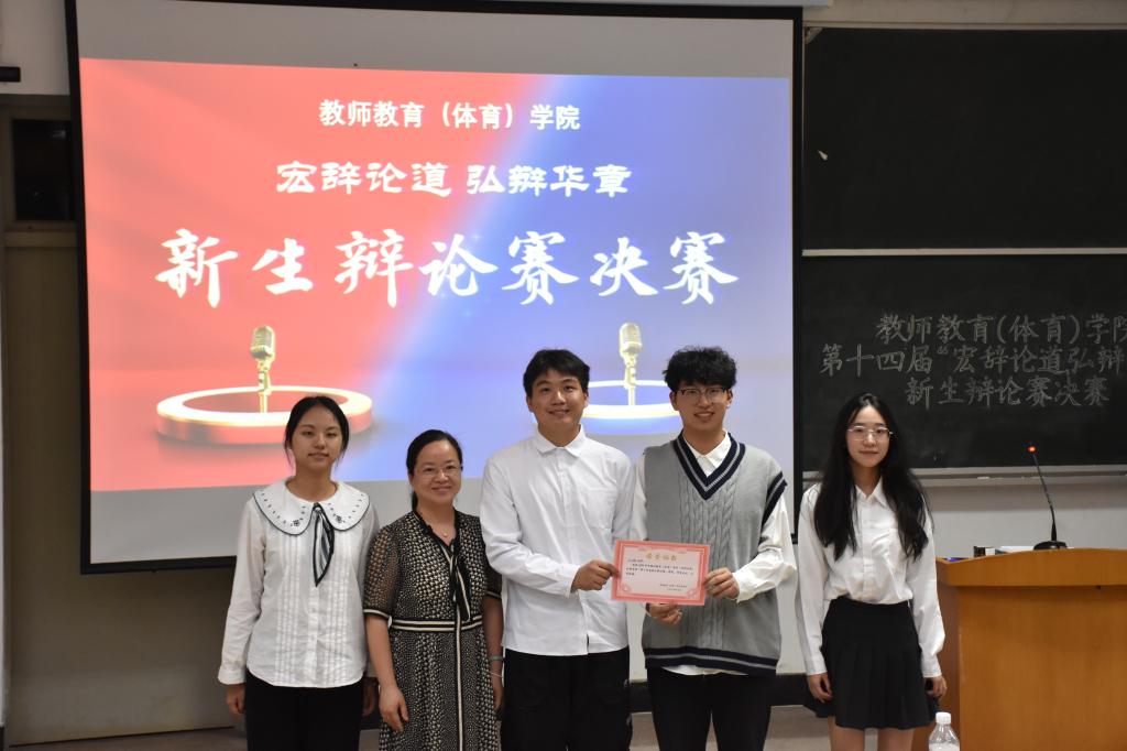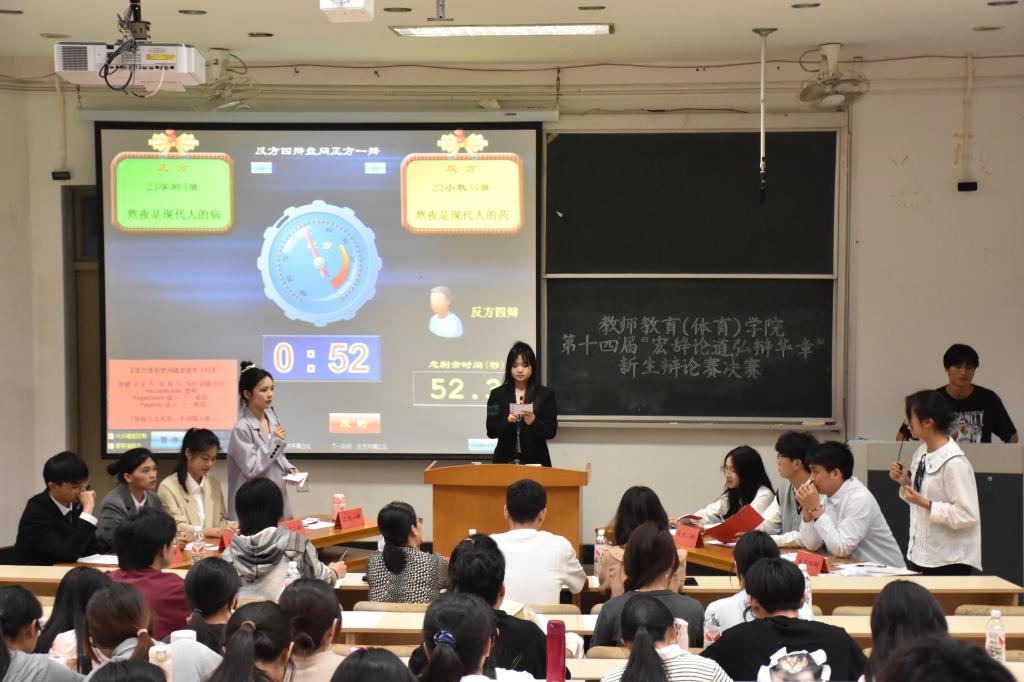 为发展同学们的思维能力,提高心理素质,加强团队合作,培养竞争意识,5月15日晚,教师教育(体育)学院于A5教室举办第十四届“宏辞论道,弘辨华章”新生辩论赛决赛。本次比赛由辅导员徐薇、朱佳婧,专任教师史和佳、李宇亮担任评委。