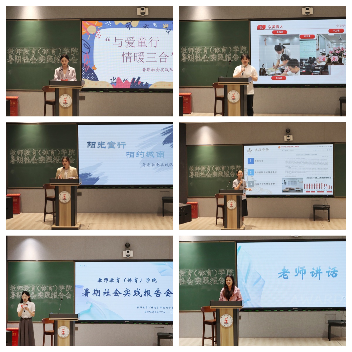 为展示暑期社会实践成果,分享实践心得。9月27日晚,教师教育(体育)学院于A6阶梯教室举办2024学年暑期社会实践报告会。辅导员徐薇、朱浩楠、屈佳妮应邀作为评委出席本次活动,各实践队伍负责人及各班代表参加本次活动。