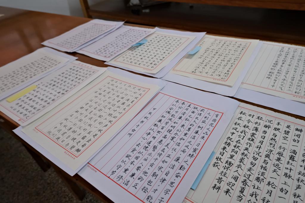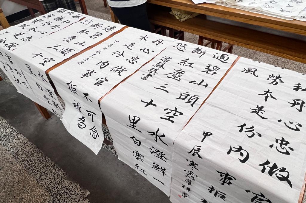 书法大赛中佳作荟萃,硬笔软笔作品各具风姿,楷书如巍峨高山端正大气,行书顺畅似潺潺溪流,草书豪迈若奔腾骏马。同学们笔走龙蛇,一幅幅作品或笔力雄浑似苍松傲立,或线条婉转若惊鸿翩跹。评委老师仔细端详,反复斟酌,经过多轮筛选比对,最终评定出85件优秀书法作品,其中软笔一等奖5件,二等奖11件,三等奖18件;硬笔书法一等奖8件,二等奖17件,三等奖27件。