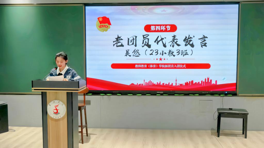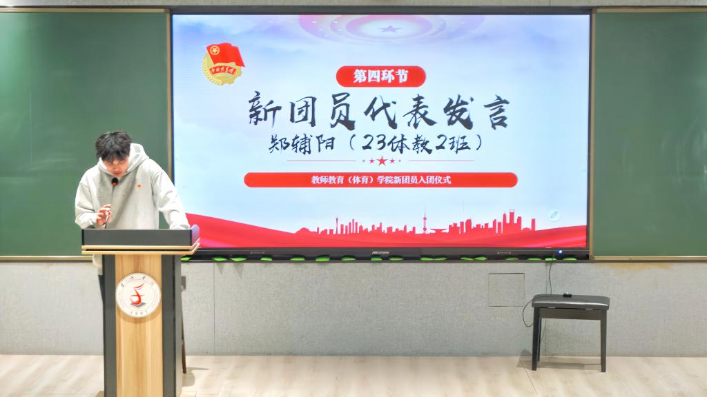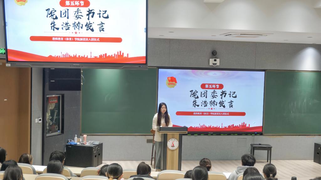 为引领团员发展,团结广大青年踔厉奋发、砥砺奋进,培养有理想、有道德、有文化、有纪律的新时代青年,12月4日中午,教师教育(体育)学院于A6阶梯教室举行了2024学年第二批新团员入团仪式。本次大会由童淑桦同学主持,院分团委书记朱浩楠老师,老团员代表吴悠及全体新团员参加本次活动。