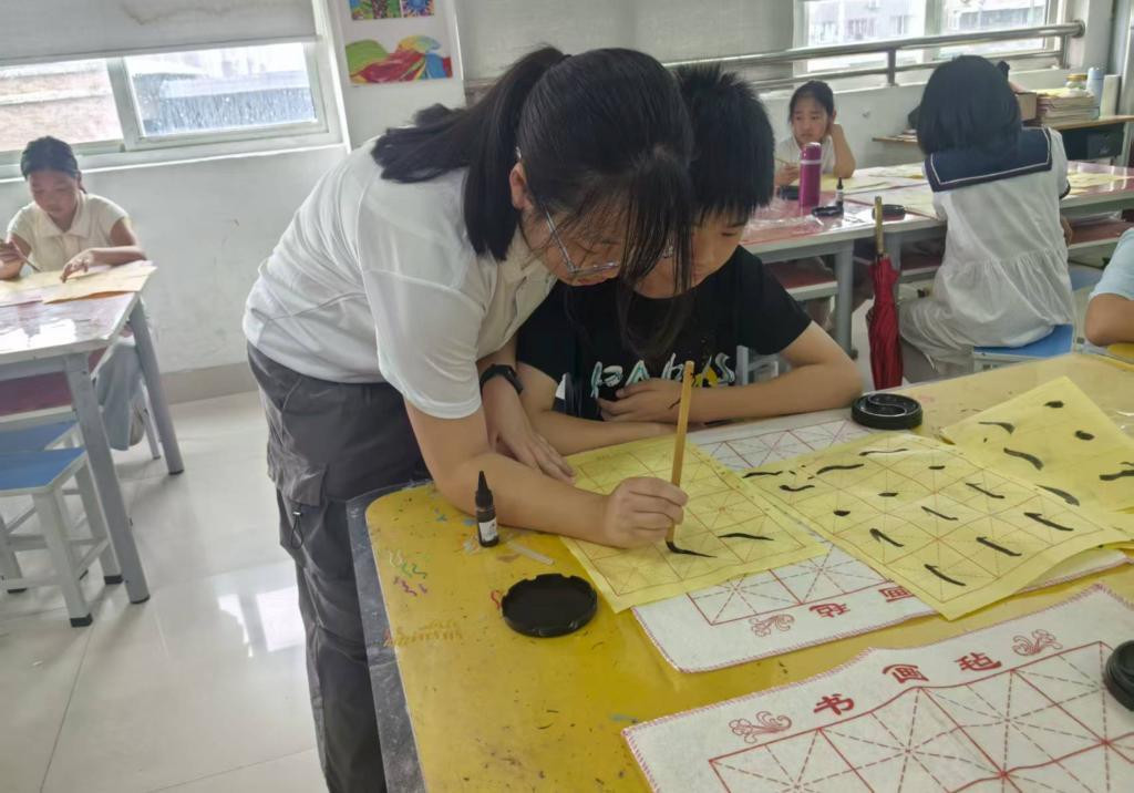 “墨韵城北”书法班以“海”为主题点明方向,带领同学们开启书写之旅,从“永字八法”到临摹《观沧海》,引导学生在笔墨间感受大海磅礴的力量之美,提升对书法艺术与自然之美的感知力。