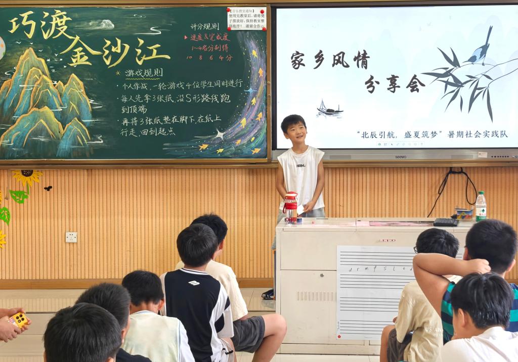 近日,“北辰引航”暑期社会实践队举办了一场别具特色的家乡风情分享会。同学们从家乡地名、特色美食、风景名胜等方面向大家介绍了祖国各地独具特色的风土人情,让热爱家乡、坚定文化自信的种子在孩子们心中生根发芽。