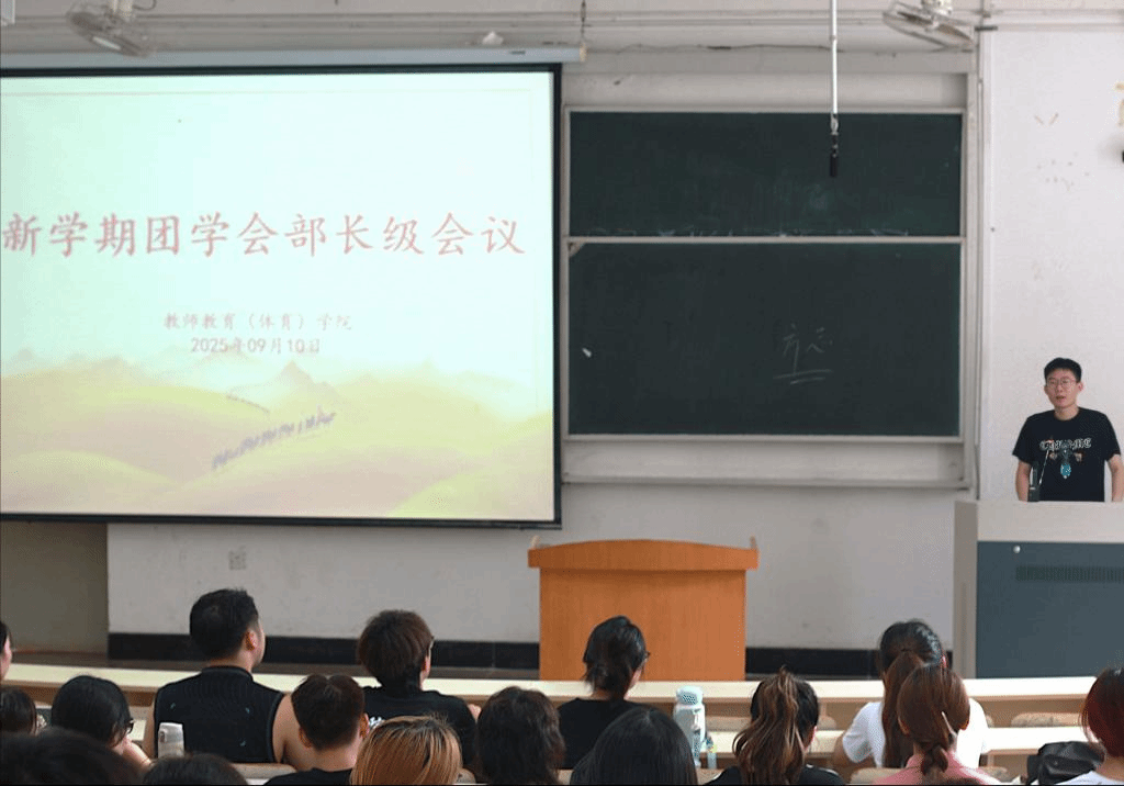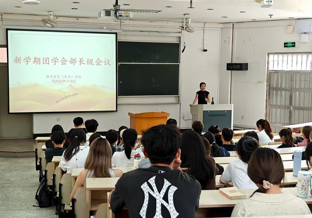 为新一学期团学会工作奠定良好基础,9月10日中午,教师教育(体育)学院新学期团学会部长级会议在A5教室召开,会议由院分团委书记朱浩楠老师主持,辅导员沈宇佳老师出席,团学会主席团、部长级全体成员参会。会议聚焦团学工作部署、沟通协作与重点任务推进。