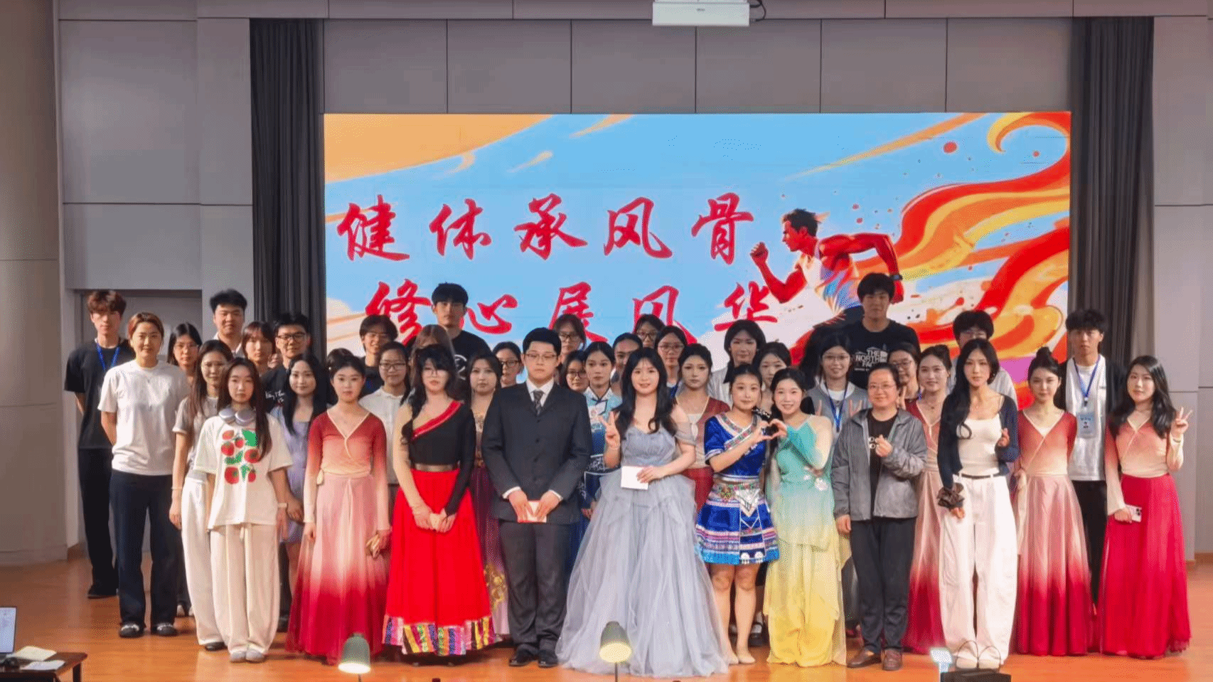 本次专业汇报演出深耕文体融合育人理念,立足专业特色,为学子们搭建了展示自我、锤炼本领、交流成长的优质平台,厚植文体相融的育人氛围。《领航》获一等奖,《弥渡歌》《立春》获二等奖,《Not Good》《舞力全开》《少年说》获三等奖。演出在表演者、评委老师和工作人员的合照中落下帷幕。