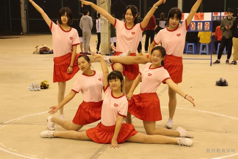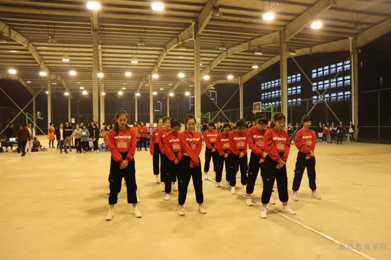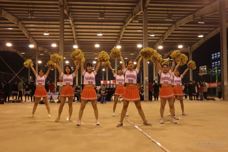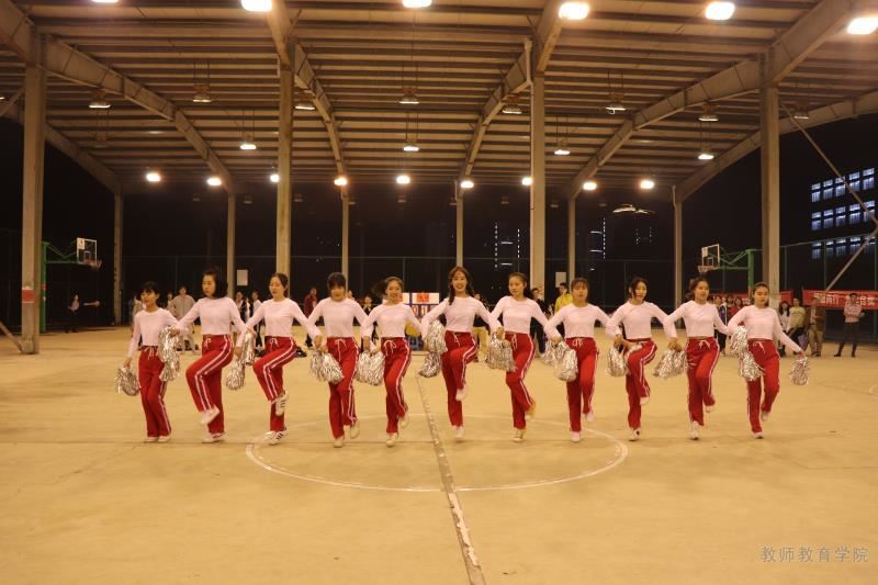为加速学院融合,创建“和合学院”,10月15日晚,风雨篮球场,教育学院在新生篮球赛赛事正酣之余,举办篮球赛啦啦操大赛,受到师生的广泛关注。此次比赛邀请了体育专业健美操队的二级裁判打分,共有8支队伍参加。