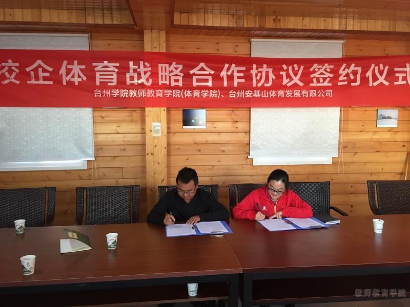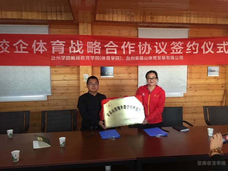 正值浙江省安基山第三届国际滑翔伞邀请赛举办之际,10月27日下午,教育学院院长周瑶率副院长吴银银、林辉杰等一行赴台州安基山体育发展有限公司,与公司总经理方跃举行“安基山滑翔伞教学实践基地”签约暨授牌仪式。省体育局田径运动管理中心、白水洋镇负责人出席。
