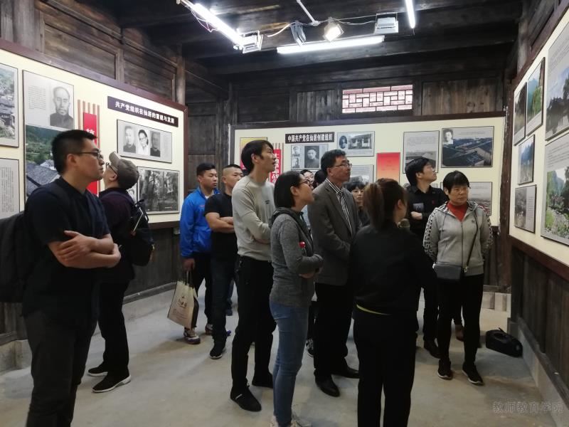 在仙居县委旧址纪念馆的演播厅,全体党员观看了革命专题教育片,集体接受了爱国主义洗礼,教育学院党总支书记赵校民还为第3第4季度入党的同志集体过了一个有纪念意义的政治生日。在革命旧址,全体党员还瞻仰了革命烈士英名墙,并追随先辈足迹重走了红军路。