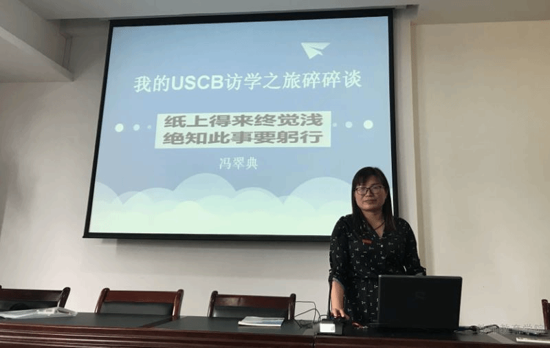 赴美访问学者冯翠典老师做了《我的UCSB访学之旅碎碎谈》的汇报,着重从美国加州大学圣塔芭芭拉分校教师教育学院的专业运行、课程设置、学业指导等方面的分享提出了如何通过教师专业发展的过程更好服务于学生的问题。冯翠典老师也分享了在一所K-6年级综合性小学做志愿者的经历,并分享了美国K-6年级教育的主流模式、核心特征和关键区别,为我们更好地培养K-6年级的未来教师提供了新思考。