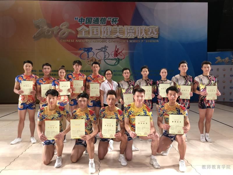 8月23-27日,由国家体育总局和中国健美操协会主办的全国健美操联赛在山东烟台举行,来自全国各地的89支代表队共1000多名队员参赛。我校健美操队获得成人精英组五人操第三名、成人精英组混合双人操第四名、成人精英组三人操第五名,5名参赛队员全部获得晋级冠军赛的资格,成绩优异。