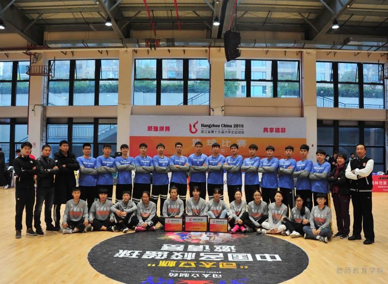 本届大赛由浙江省教育厅、浙江省体育局主办,是省大学生篮球比赛中最高级别的赛事,12月1日—12月7日在台州仙居举行。浙江大学、浙江师范大学、浙江工商大学、浙江理工大学、杭州师范大学、宁波大学等全省10所高校13支队伍参赛。我校女子篮球队由10位体育专业、1位小教专业、1位中文专业、1位数学专业13名队员组成,男子篮球队由15位体育专业学生组成,教育学院戴晓捷、郑素萍、鲁建波老师带队指导。