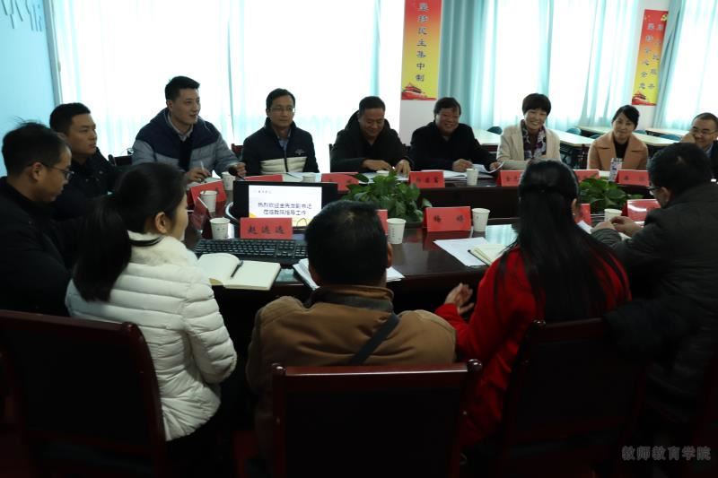 12月12日下午,校党委副书记金先龙走访教师教育学院(体育学院),学工部、 保卫处、校团委等相关职能部门负责人陪同调研。教育学院领导班子与全体学工人员参加调研会,党总支书记赵校民主持。
