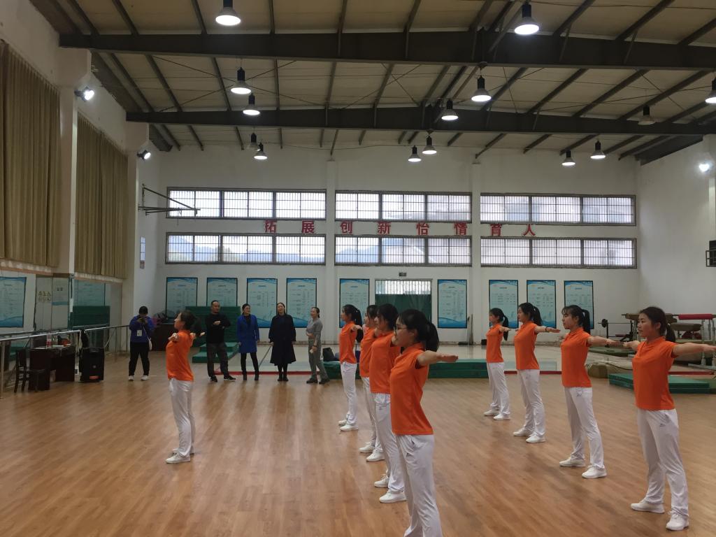 为备战第十五届省大学生运动会“阳光体育”广播体操项目,3月28日下午,教师教育学院(体育学院)特邀中国健美操协会大众委员会副主任、浙江省学校体育协会操舞分会副主席兼秘书长、浙江美术学院教授张杰莅临指导,学院院长周瑶教授,体育专业教学部主任、校体操队教练沈芝萍教授等陪同。