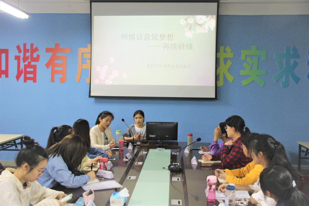 为落实学生的考研指导和服务工作,营造学院积极向上的学风,5月14日晚,教育学院在5号楼三楼会议室举办第二期“师情话意筑梦想——再续研缘”研讨会,邀请考上上海师范大学研究生的成楚洁同学做考研经验分享。学院辅导员赵远远出席本次活动。