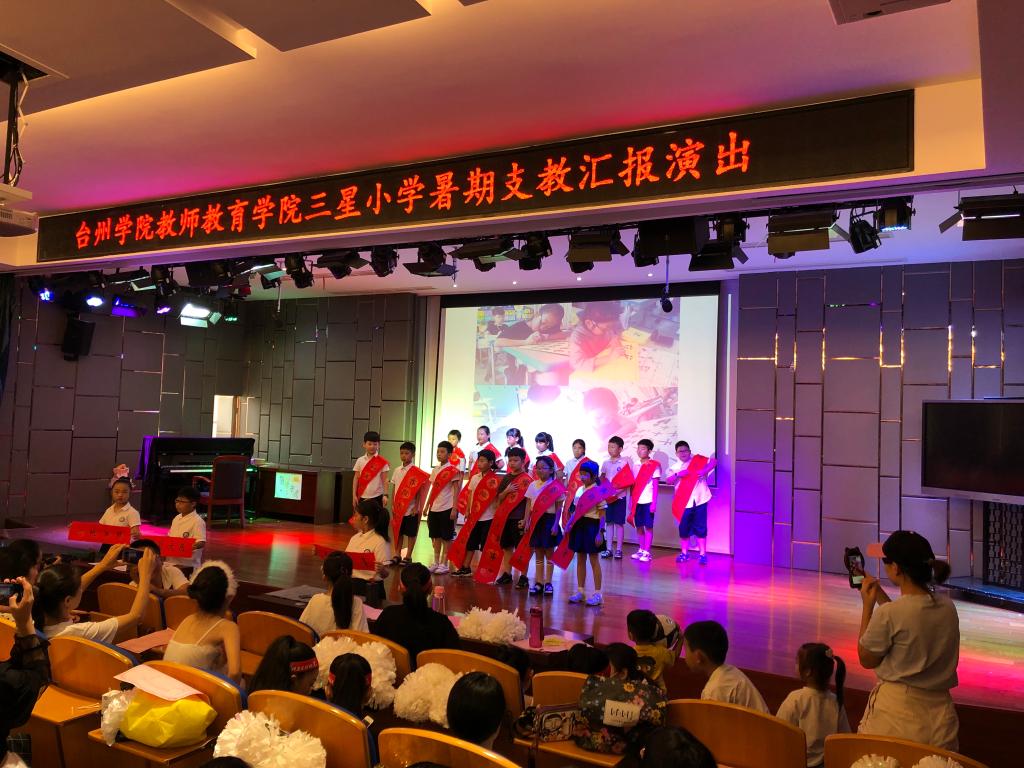 7月13日上午,台州学院教师教育学院(体育学院)“花开半夏”暑期实践队与温岭三星小学举办了汇报演出。三星小学的两位老师和学生家长应邀观看本次汇演。