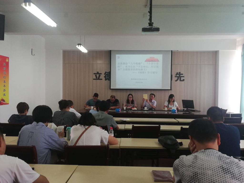 9月26日下午,教师教育学院在学院会议室召开“不忘初心,牢记使命”主题教育活动学习会。学院领导班子、系室主任、党支部书记、支委等参加,赵校民书记主持会议。