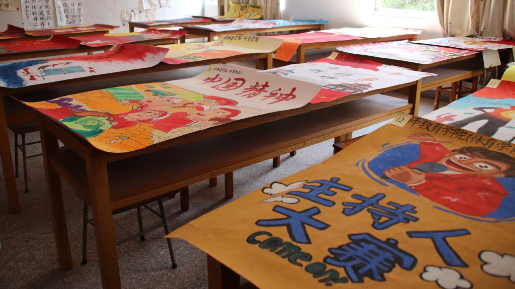 为丰富同学们的大学生活,促进校园精神文明建设,9月29日中午,教师教育学院(体育学院)在八号教学楼一楼举办了绘主题海报大赛评选活动。由学前教育系主任柯甫凯,辅导员赵远远、朱萌担任此次大赛的评委。