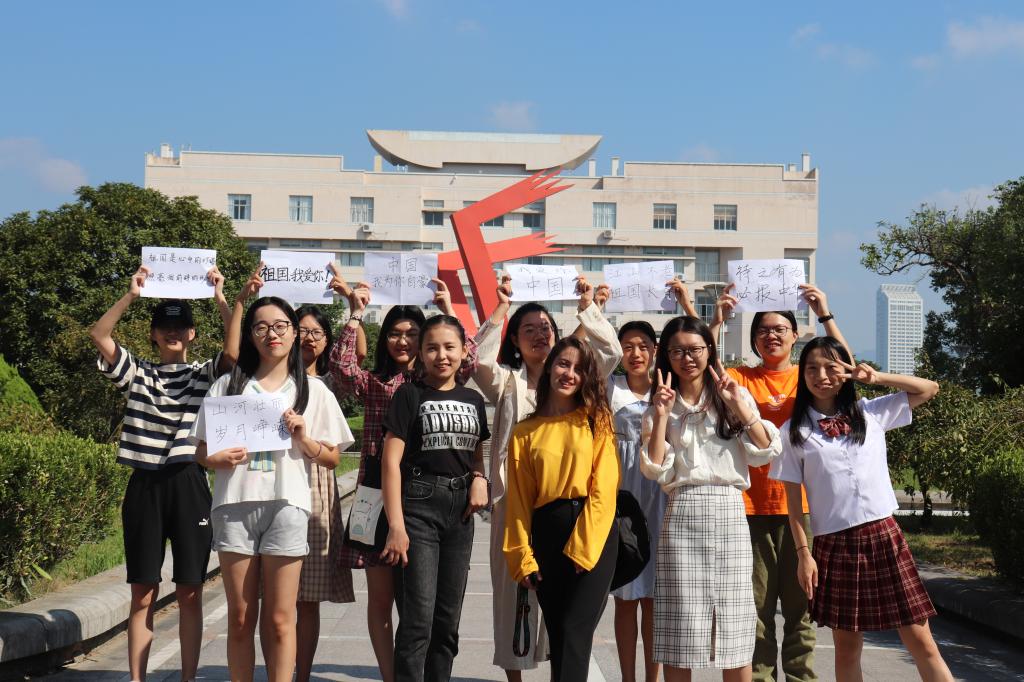 作品拍摄期间,不同参赛组选取图书馆、情侣长廊、操场、办公室等校园内特色地点进行拍摄,捕捉关键镜头,然后经过后期剪辑配音,完成参赛视频的制作。在表达爱国热情的同时,参赛同学也通过场景转换、特写镜头拍摄等方式展现出别出心裁的视频设计。