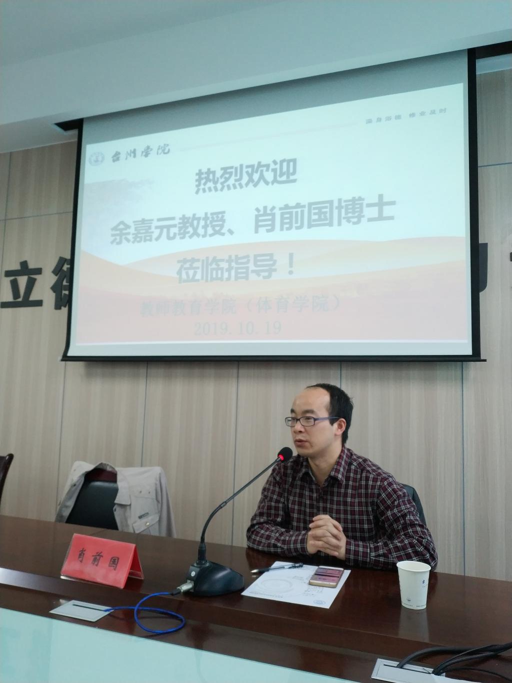 10月19日,教师教育学院(体育学院)邀请南京师范大学心理学院余嘉元教授来学院指导心理学学科建设和教育硕士学位点申报工作,重庆文理学院应用心理学专业系主任肖前国博士随行交流经验。周瑶院长、吴银银副院长、林辉杰副院长及教师代表、学生代表出席交流会并聆听讲座。